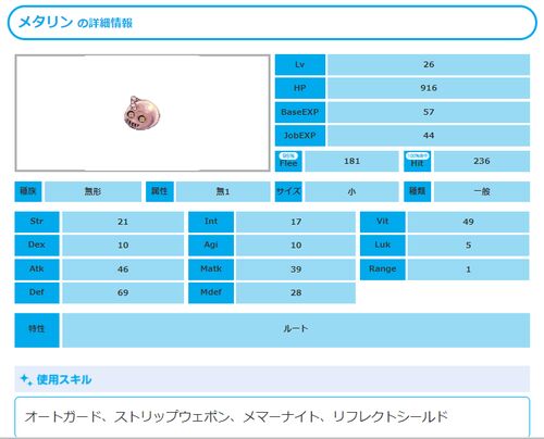 こんにちは。 まさかここまで鉄鉱石だけで引っ張るとは思いませんでしたよ。 今日の狩場 初級狩場における鉄鉱石最後の砦!メタリン! 初級狩場のMobにしておくには勿体ないスキル持ちですね。攻撃のメマーナイトに防御のオートガード。しかも嫌がらせのストリ…