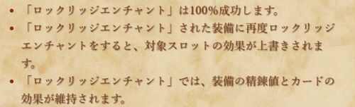 こんにちは。 ちょっとしたお金が入ったので、物影2本にエンチャントを施そう。何せ初めての試みなので、調査は念入りに。 よし、失敗して爆散とかはなさそうだ。用意したロックリッジコインは10枚。1回1枚でできるのかな? 早速チャレンジ!